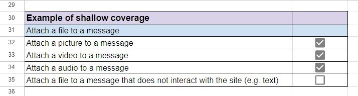 Here is an example of a shallow coverage checklist for testing the functionality of “Attaching a file to a message”: