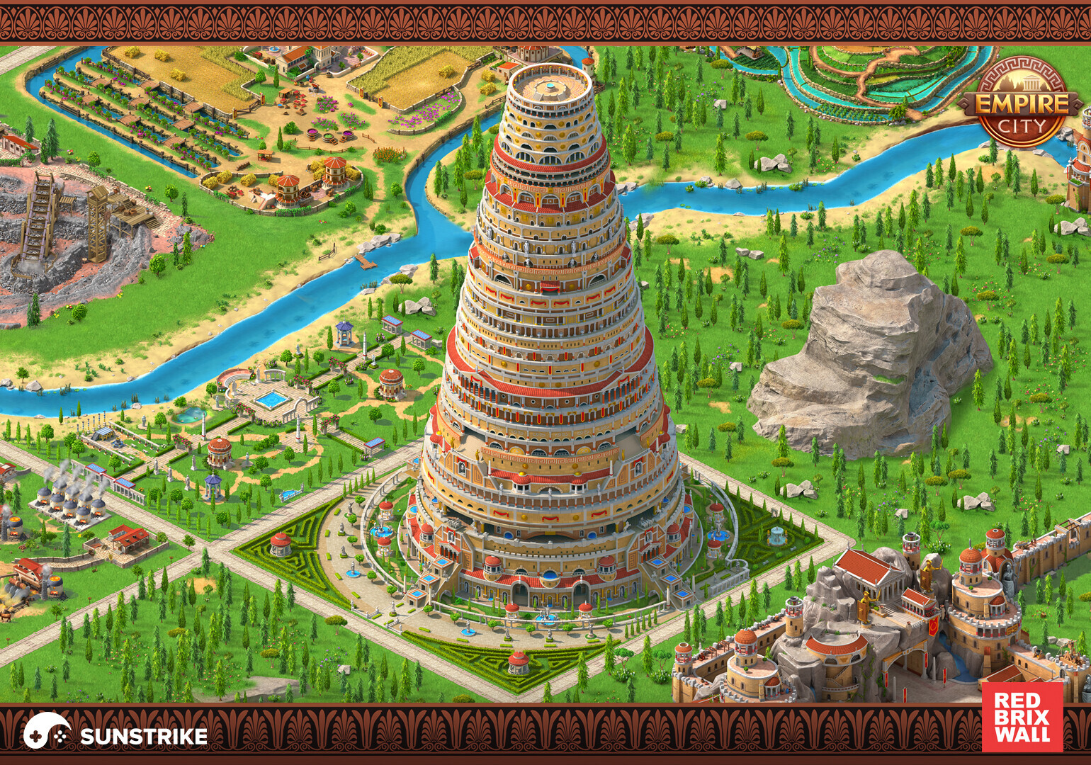 The Tower of Babel created by SunStrike studio artists for Empire City project from Red Brix Wall.