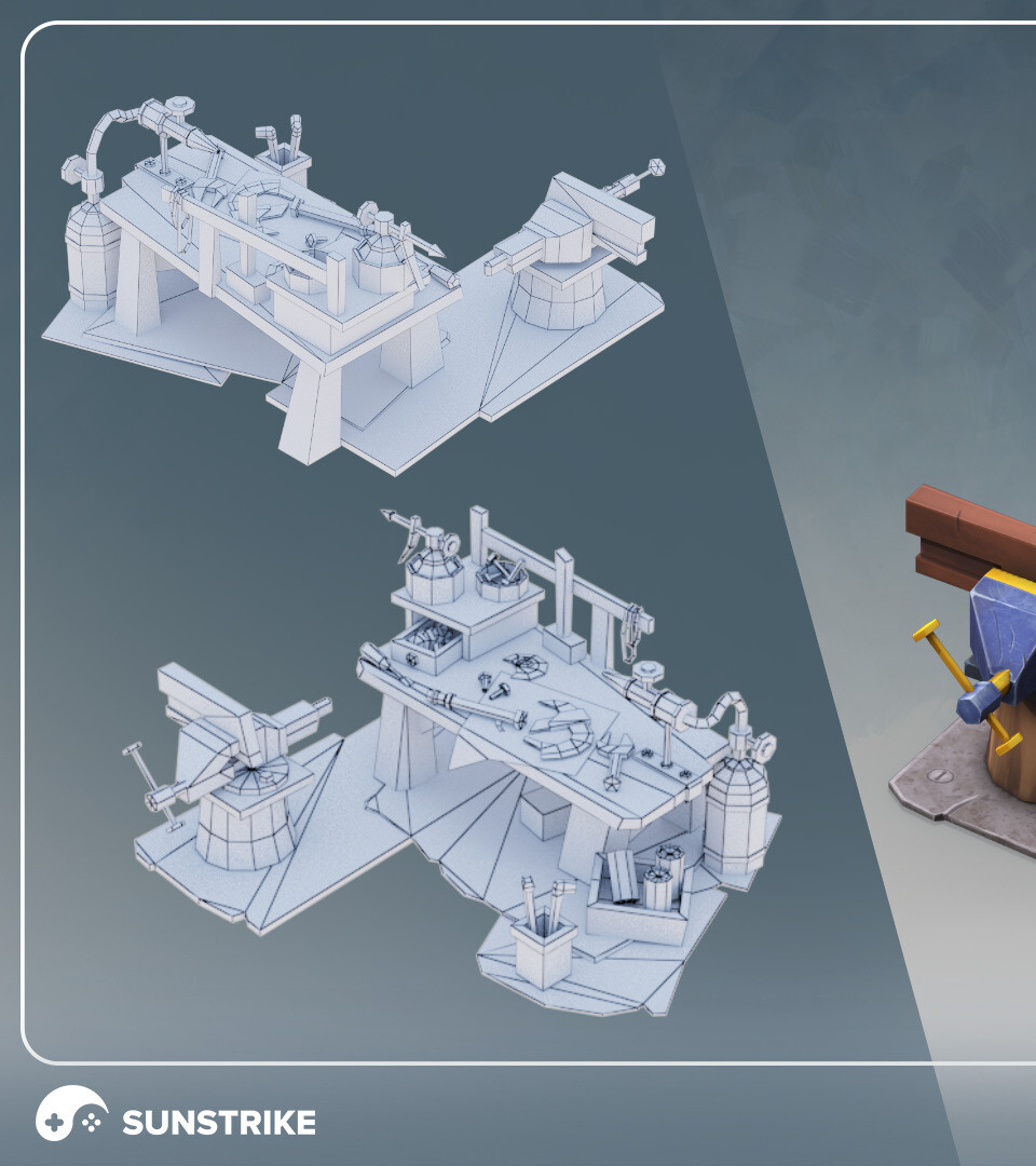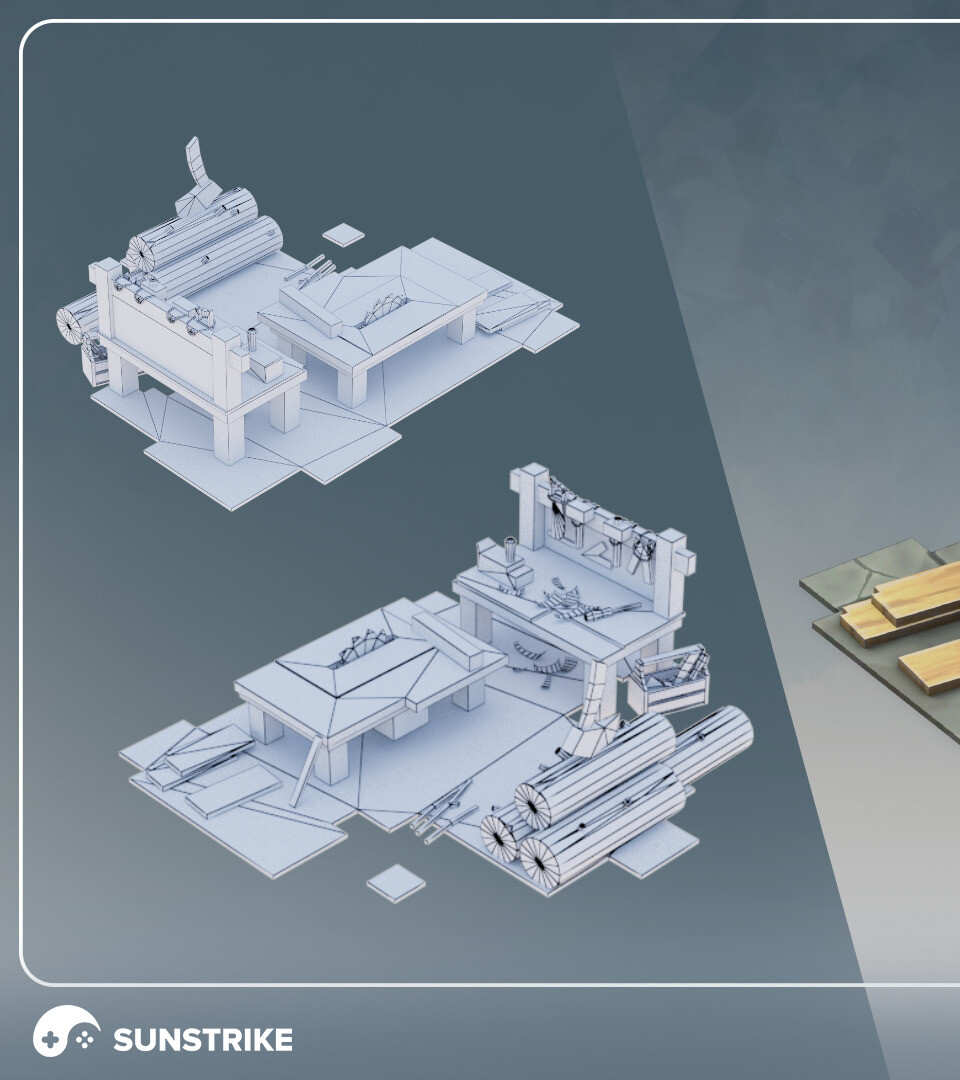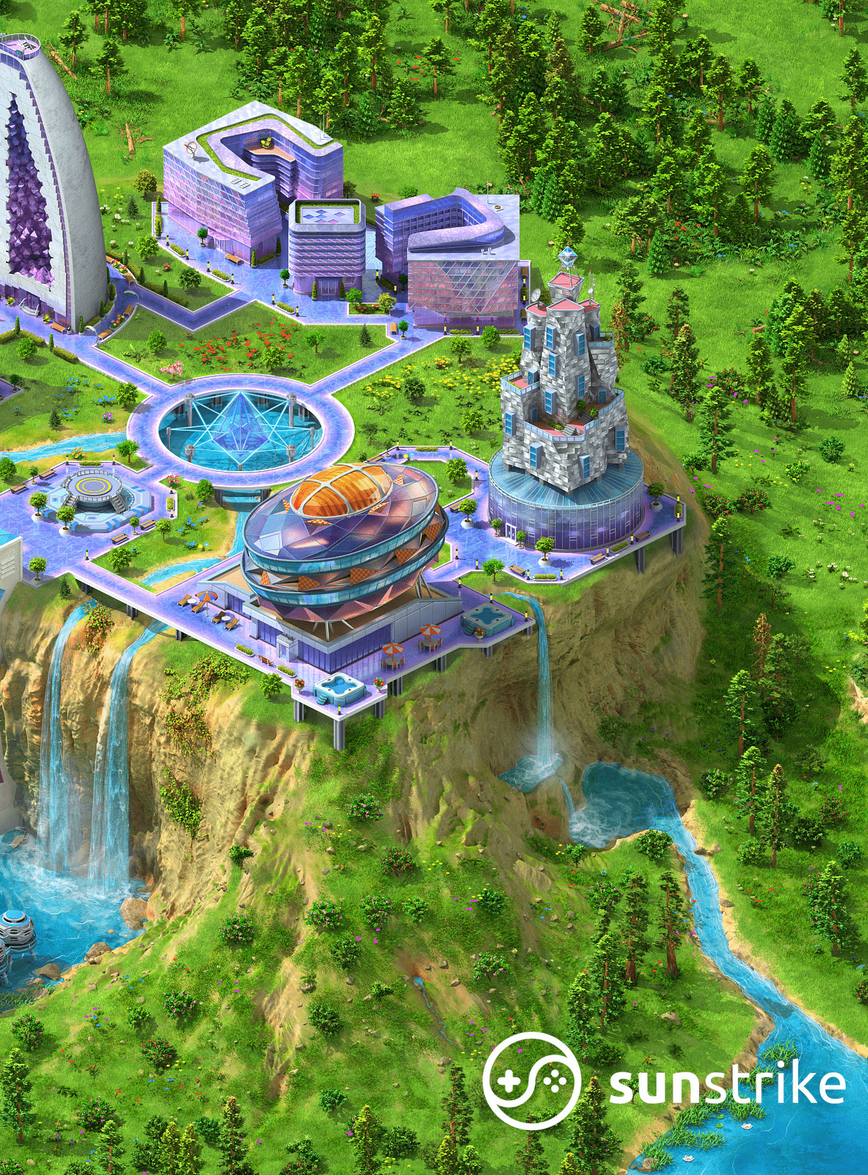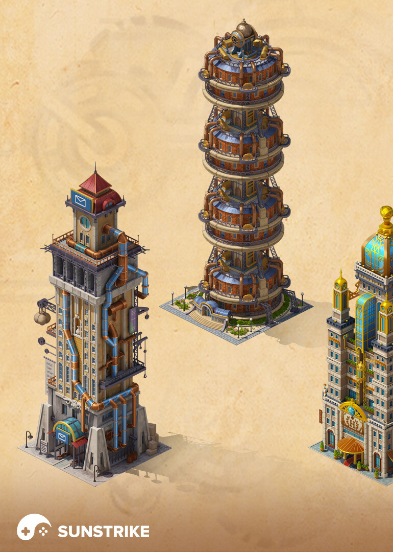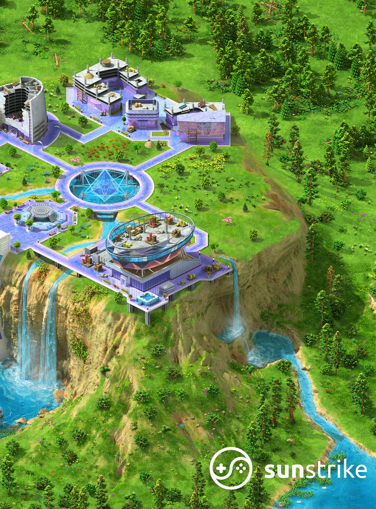 Game building for SuperCity. Initially, SunStrike artists prepared the concept using photo references. Based on the concept, 3D modelers create objects, set up materials and visualize the final picture. Developer: Playkot LTD
