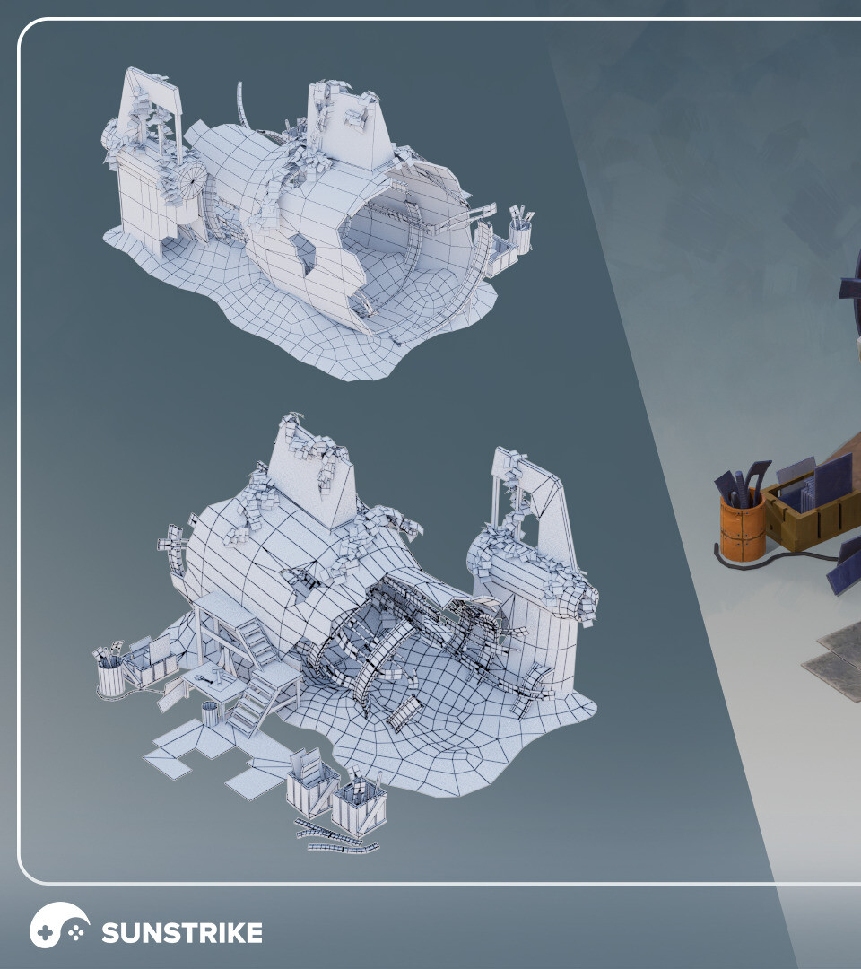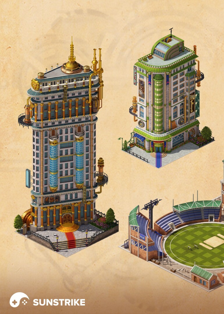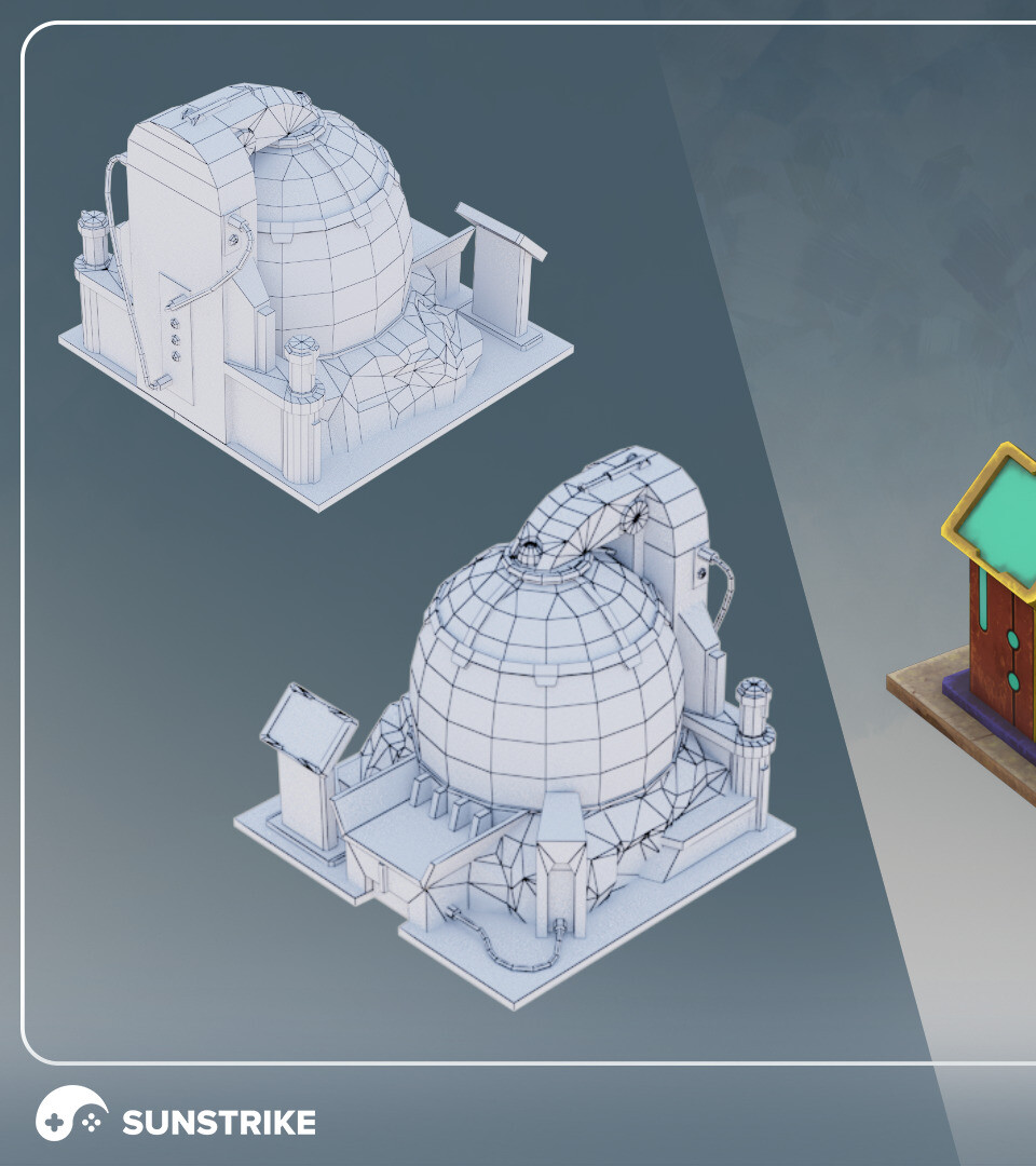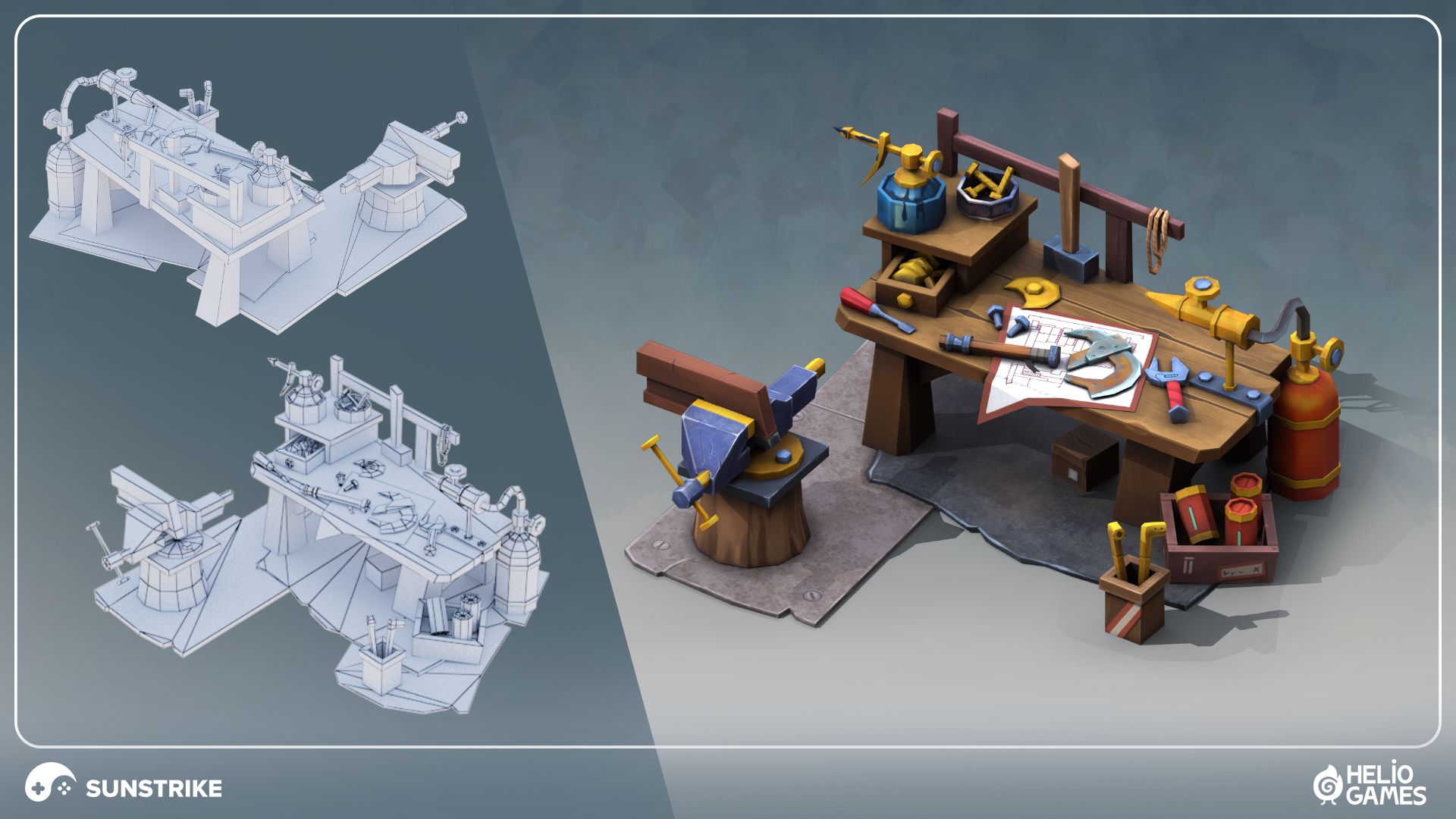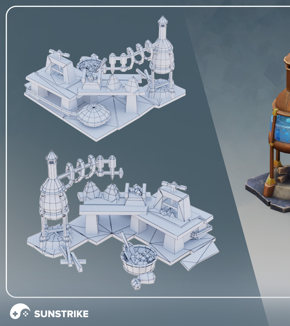 Game building for SuperCity. Initially, SunStrike artists prepared the concept using photo references. Based on the concept, 3D modelers create objects, set up materials and visualize the final picture. Developer: Playkot LTD