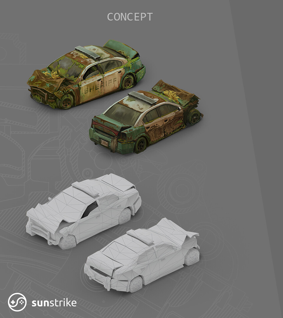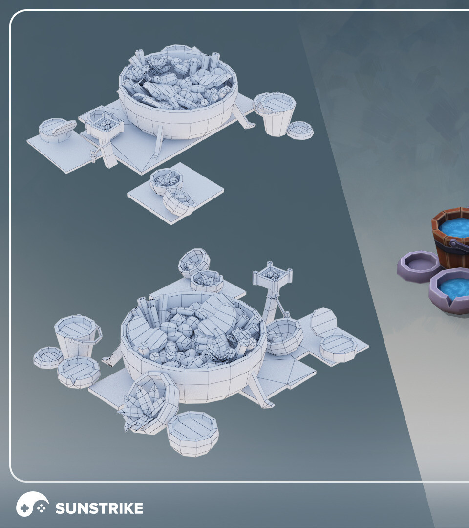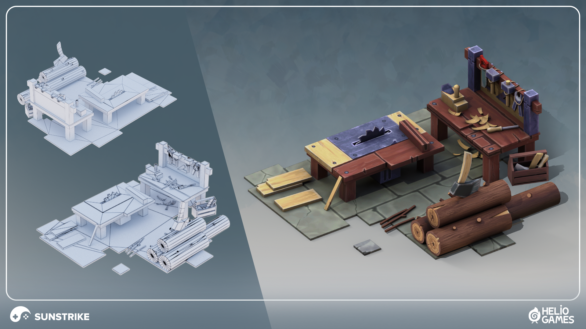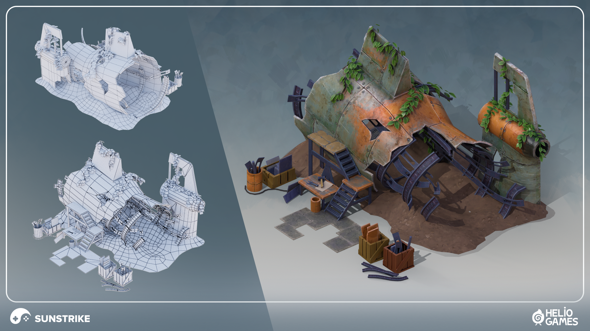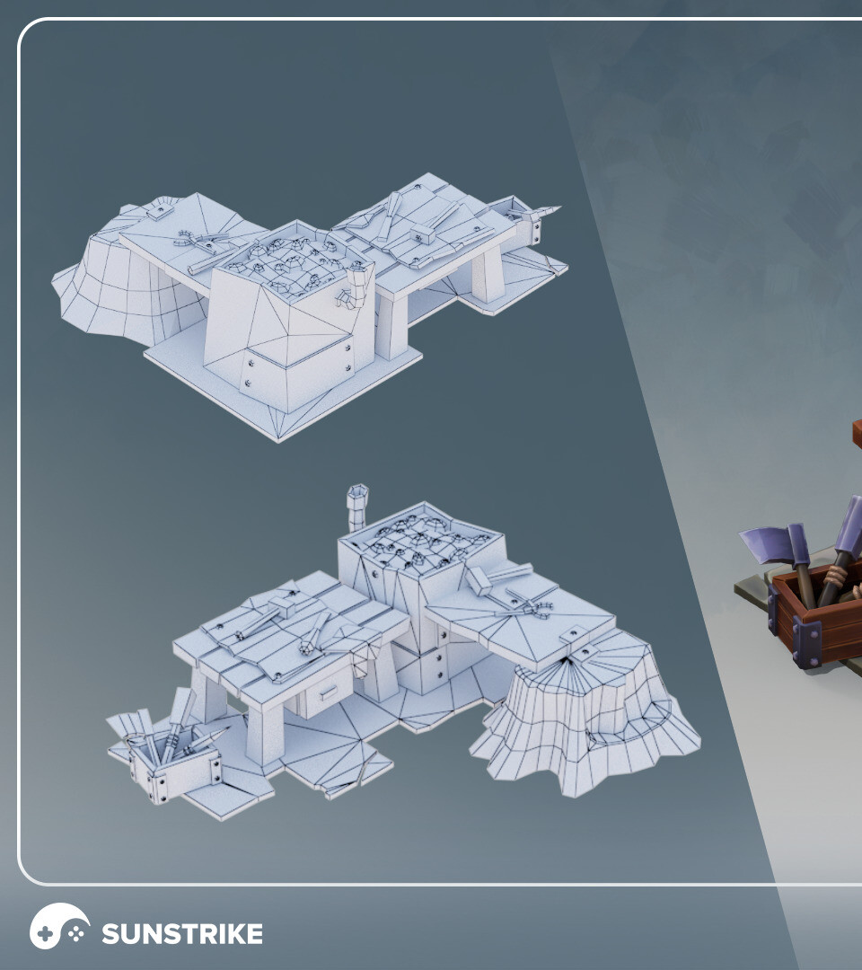 Game building for SuperCity. Initially, SunStrike artists prepared the concept using photo references. Based on the concept, 3D modelers create objects, set up materials and visualize the final picture. Developer: Playkot LTD