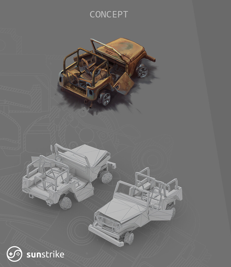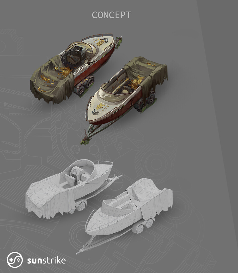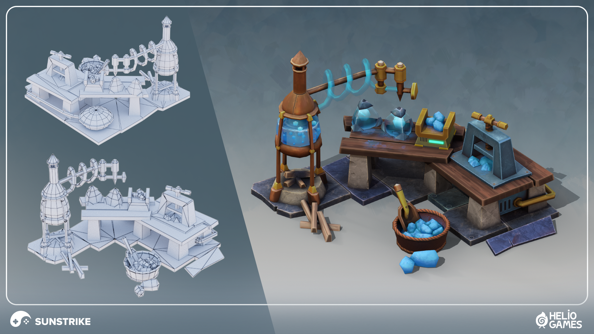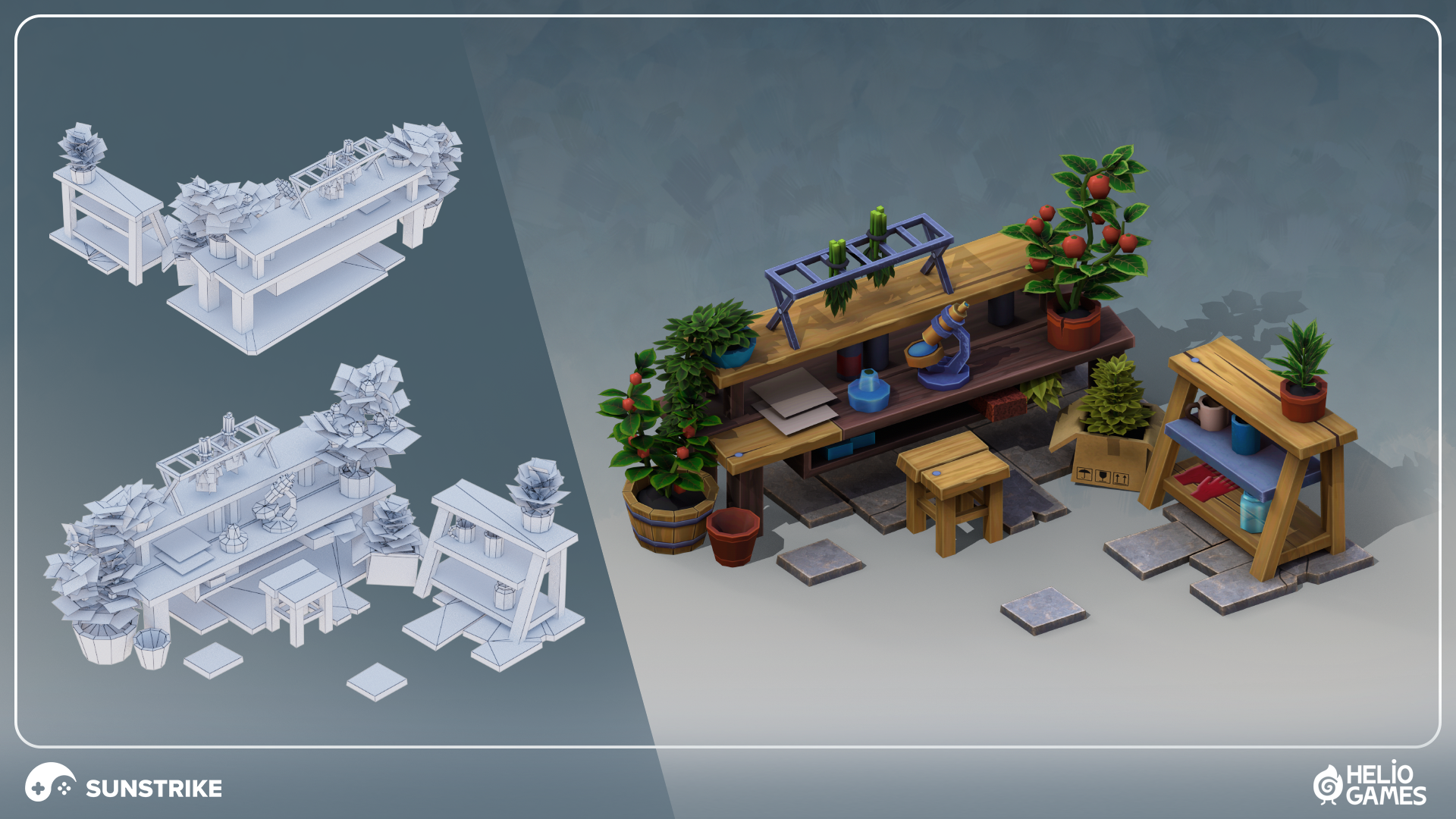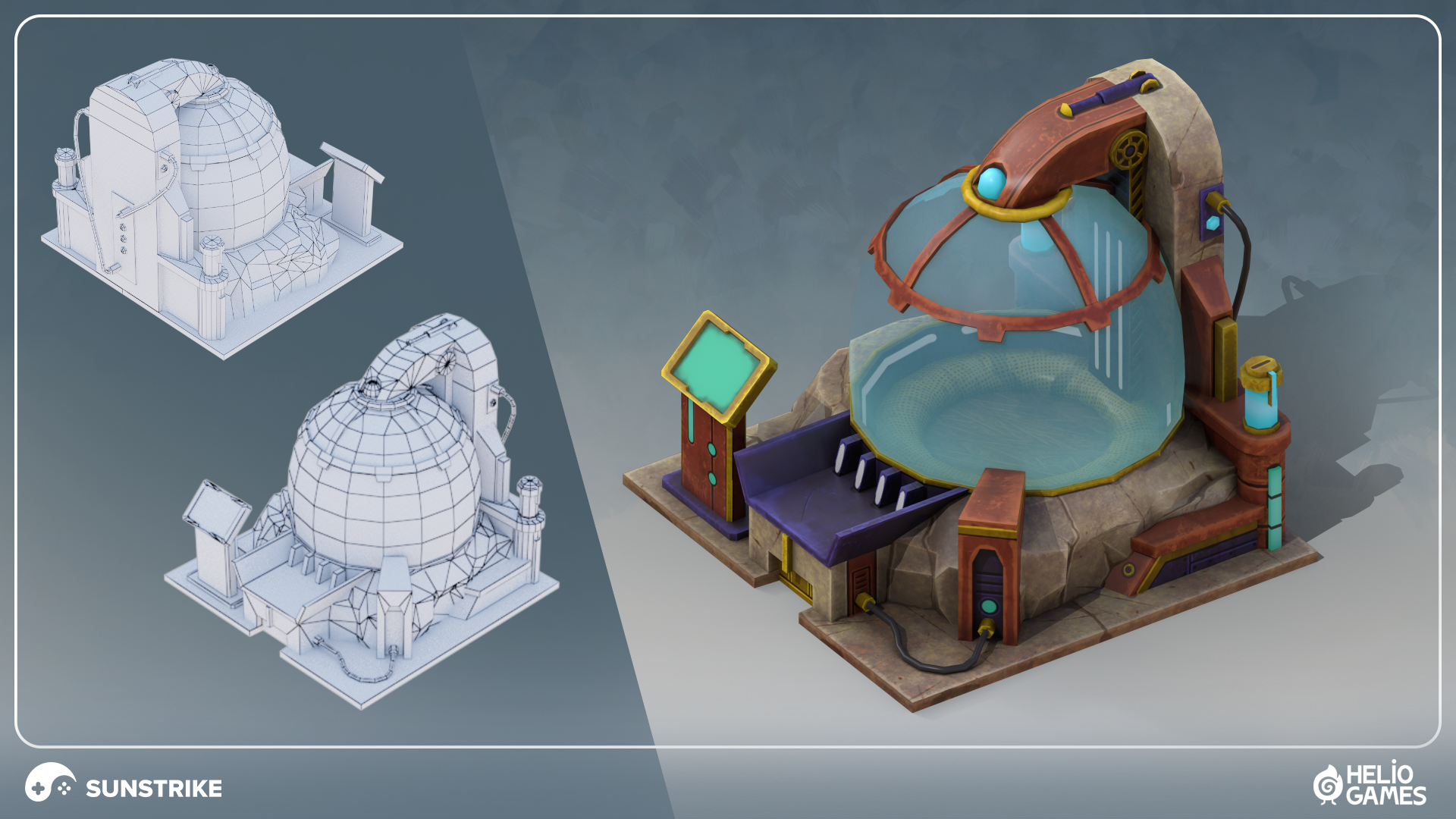 Game building for SuperCity. Initially, SunStrike artists prepared the concept using photo references. Based on the concept, 3D modelers create objects, set up materials and visualize the final picture. Developer: Playkot LTD