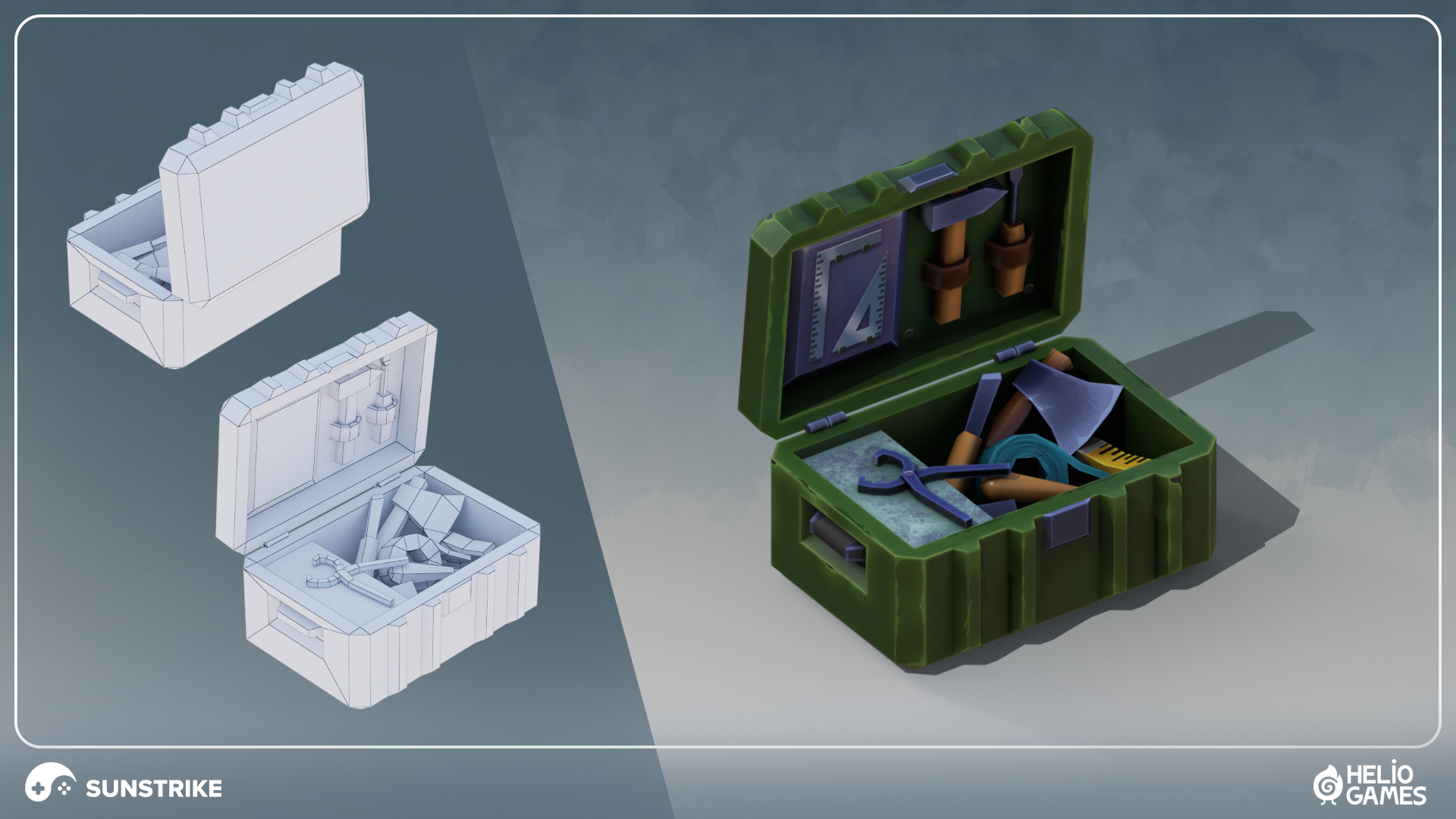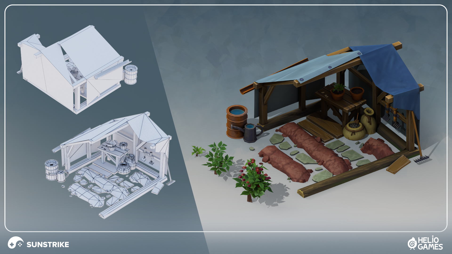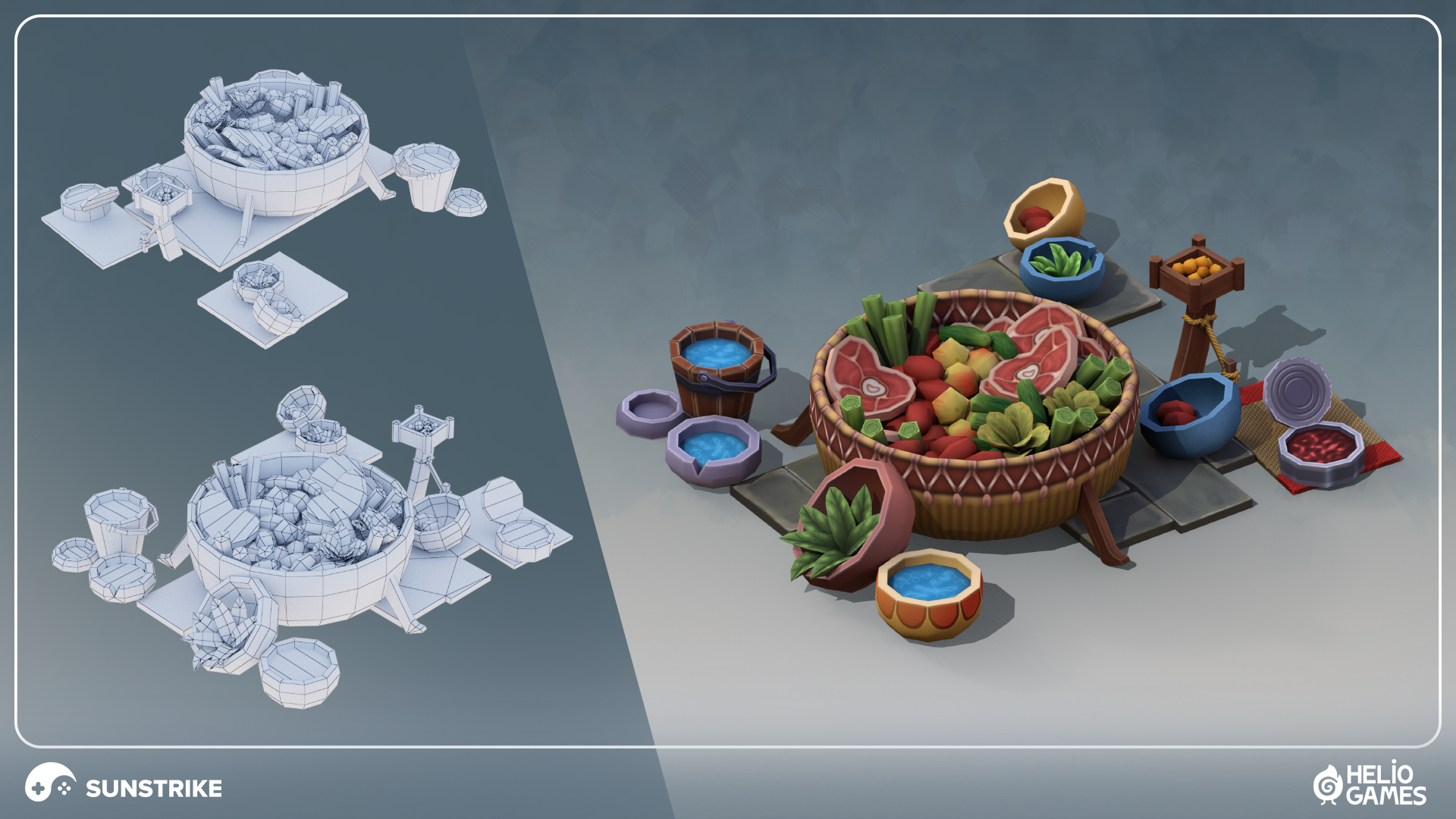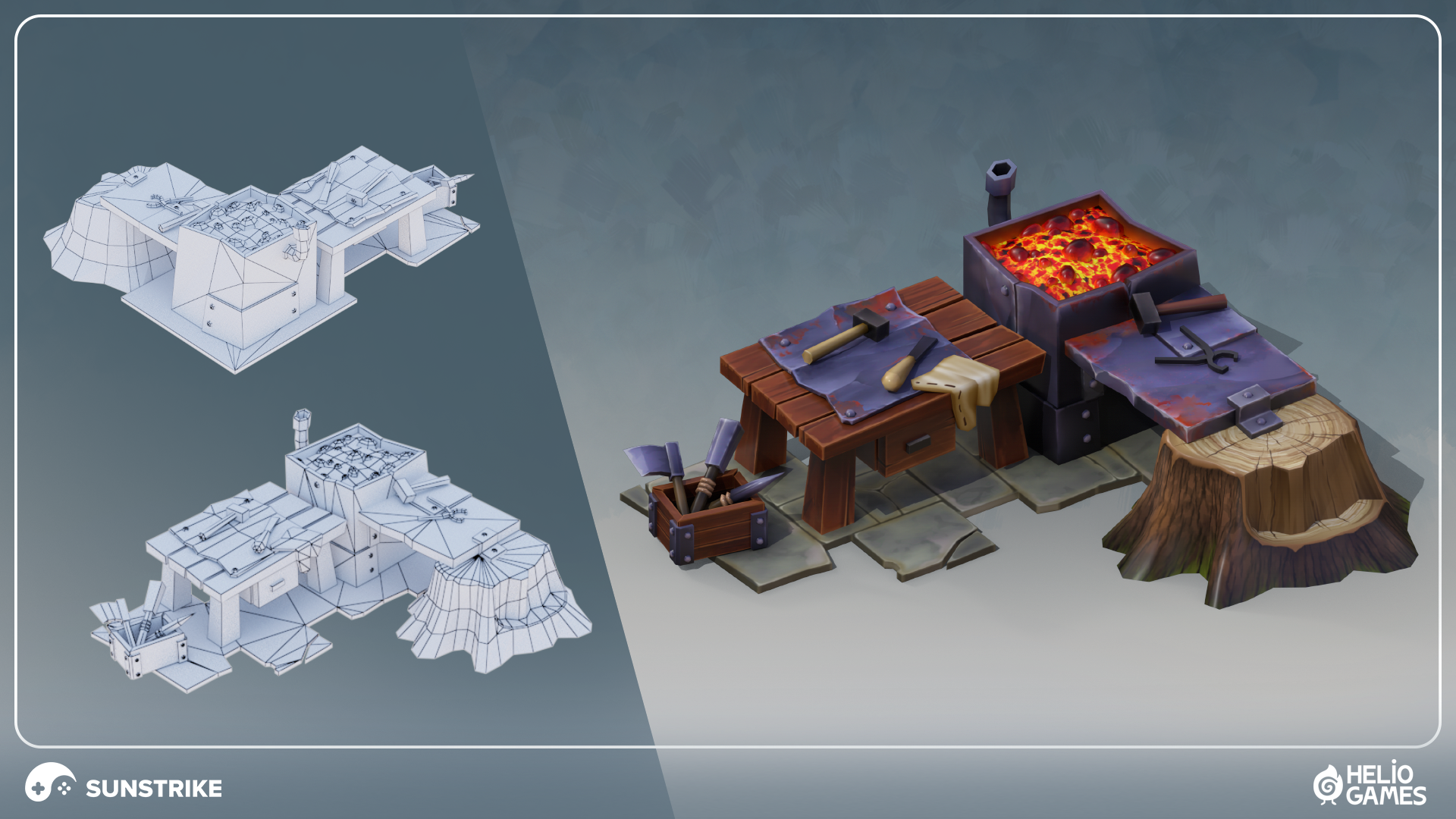 Game building for SuperCity. Initially, SunStrike artists prepared the concept using photo references. Based on the concept, 3D modelers create objects, set up materials and visualize the final picture. Developer: Playkot LTD