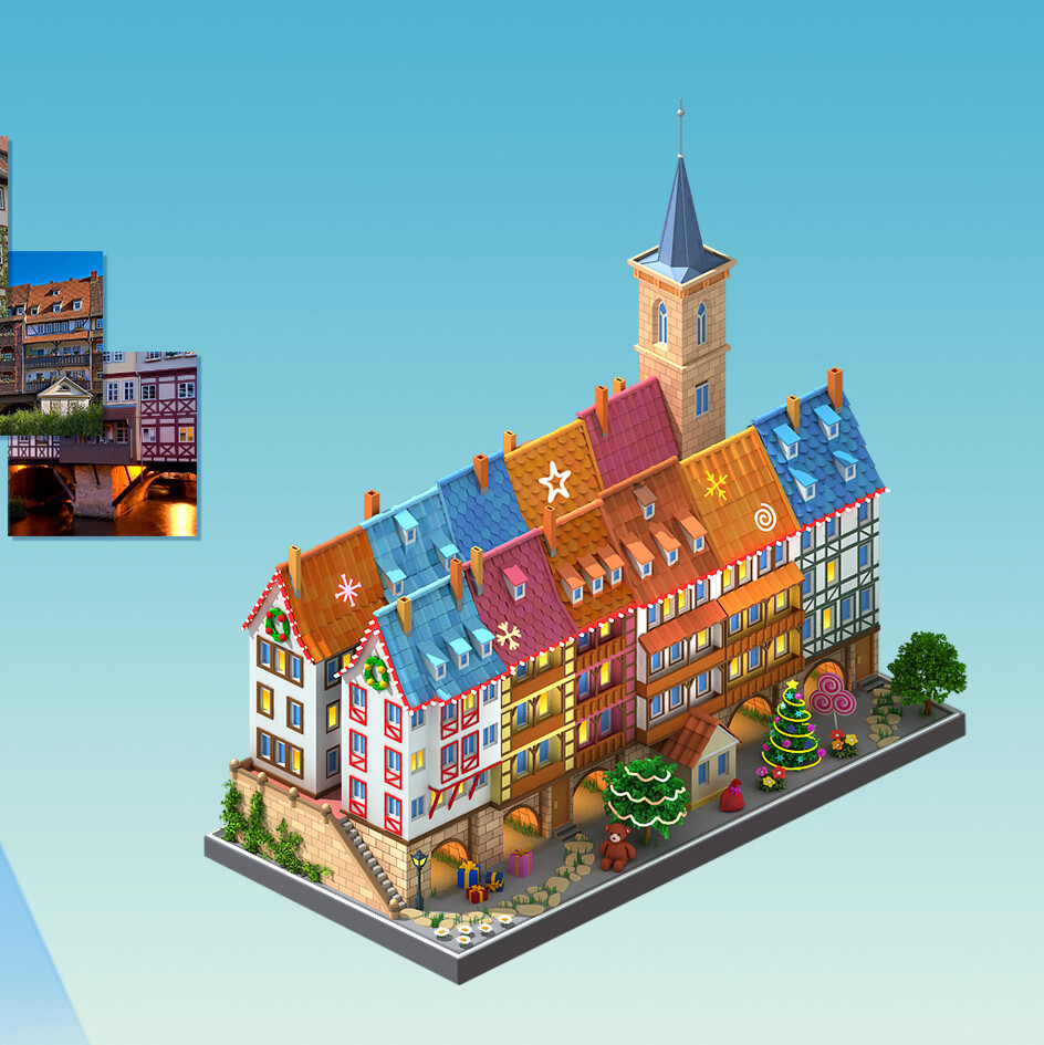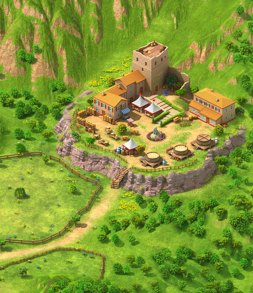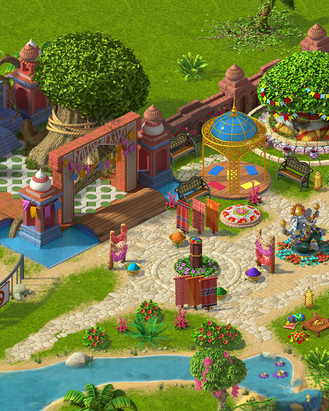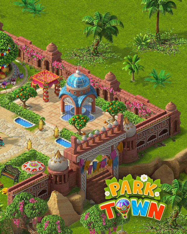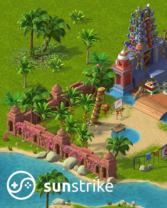 Indian location for Park Town. SunStrike artists drew a concept for the location, and 3D modelers created many game objects and environment objects. For almost every element of the location, several stages of upgrades were prepared. Our technical artists did a great job of assembling rendered objects together, creating the right hierarchy and naming the layers. Developer: Red Brix Wall