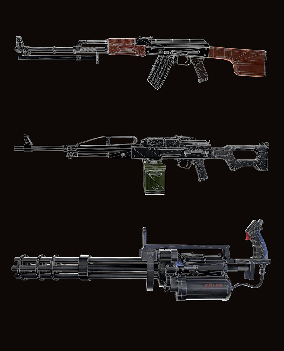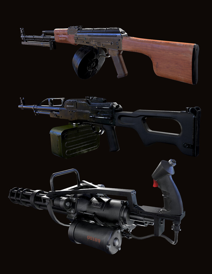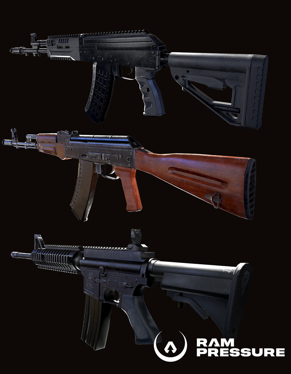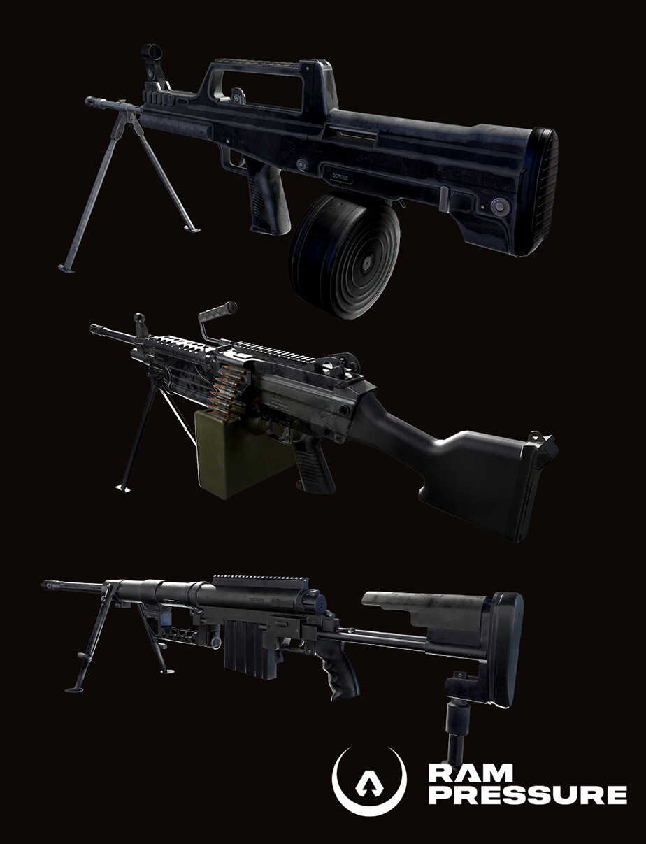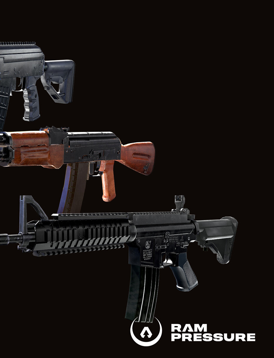 A set of weapons created by SunStrike modelers for Ram Pressure. The project is a turn-based multiplayer third-person shooter for PC. Therefore, the weapon is made with medium detail. Developer: QuadCom Interactive