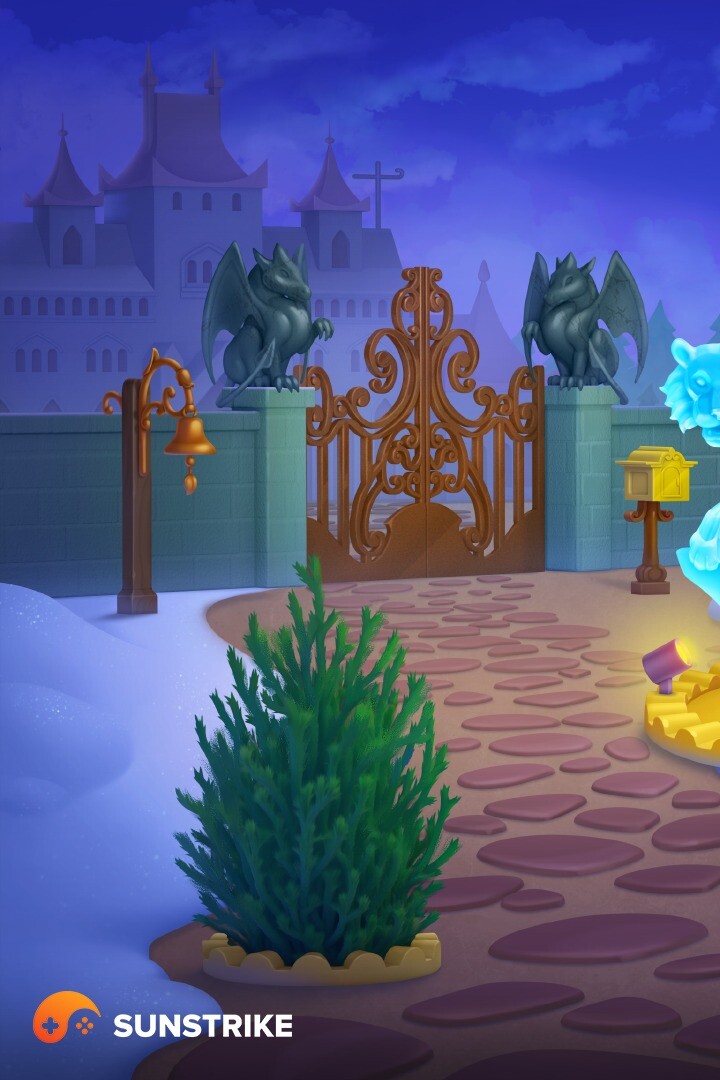 Локация Маяк для проекта Park Town. Команда SunStrike нарисовала концепт для локации, на основе которого мы создали множество игровых объектов и объектов окружения. Почти для каждого элемента на острове было подготовлено несколько стадий апгрейдов. Наши технические художники провели большую работу по сборке отрендеренных объектов воедино, созданию правильной иерархии и наименованию слоев. Разработчик: Red Brix Wall