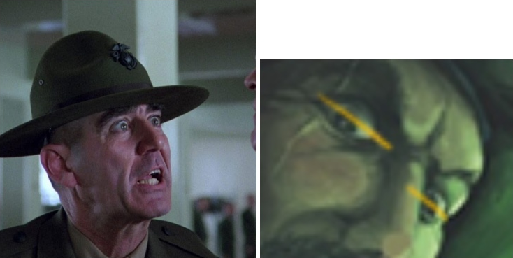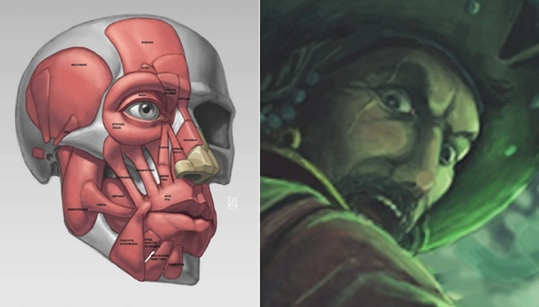 Видим, что у капитана носогубная складка оказалась такой мощной, что напоминает крупную мышцу, которой в реальности не существует, и она сильно давит на нос персонажа.