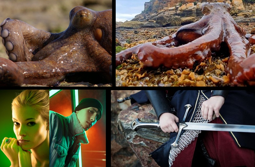 Рендер материалов. Пока что все материалы на иллюстрации отрисованы в одинаковой манере, грубоватыми мазками. На деле у каждого материала есть свои физические особенности. Как они отражают свет, как получается блик. Каждый материал имеет свою текстуру. К примеру, щупальца осьминога будут скользкие и «бликующие». У металла будет много контрастных рефлексов. Кожа при холодном освещении будет иметь разные оттенки на свету, в средних тонах и тенях. Если кожа и волосы мокрые, в них активнее отражается небо.