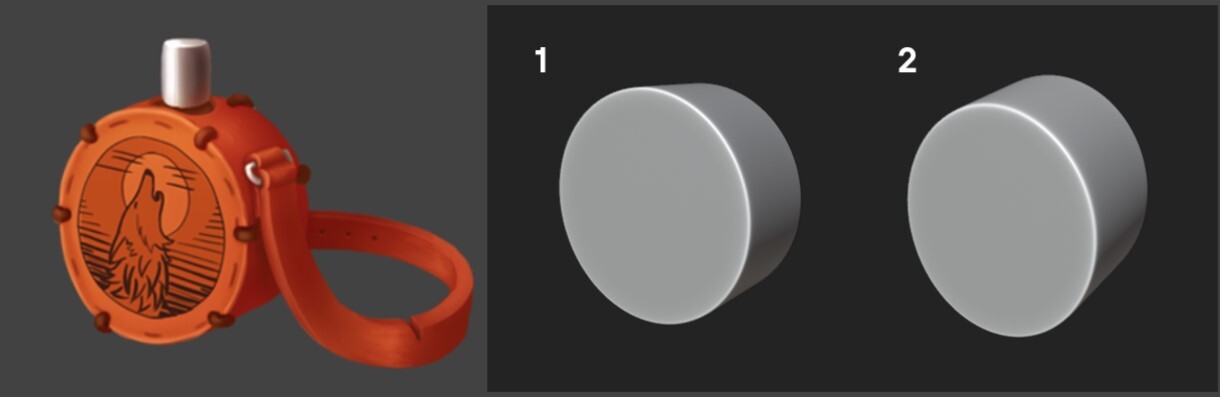 В первой картинке у фляги теперь лучше виден “живот”. Теперь мы можем показать на нем узор и подчеркнуть “живот” освещением. Во второй картинке при новом ракурсе мы лучше видим циферблат часов. Также на нем можно сделать акцент освещением. В третье картинке часы довернуты, чтобы показать верхнюю плоскость. Так картинка стала более объемной.