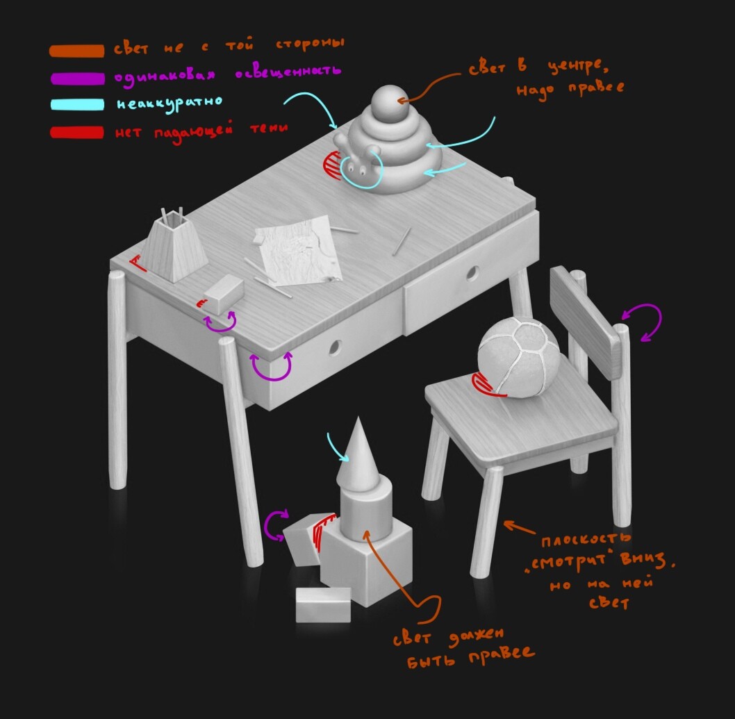 Это небольшие ошибки, тем не менее, они показывают способность внимательно просчитывать все объекты по плоскостям: